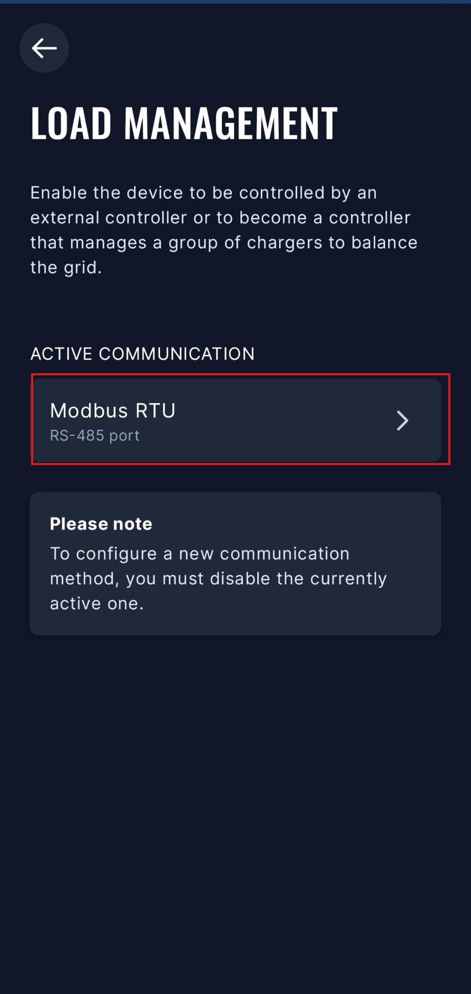 Sigue los pasos a continuación para habilitar Modbus en el TeltoCharge: